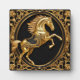 Un majestueux cheval d'or orne un cadre ornemental noir et or frappant, dégageant élégance et luxe. Ce magnifique morceau ajoute une touche royale à votre cadeau, mettant en valeur un artisanat complexe et une beauté intemporelle.