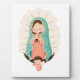 Our Lady of Guadalupe radiant stands on the moon and is supported by an angel. This illustration is a tribute to faith, perfect to add a touch of heaven to any space: in the children's room, in the living room or as a special gift to those who appreciate the unique beauty of the Kawaii style, and of course for devotees to the Virgin of Guadalupe.