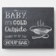 Encouragez vos invités de fête à se réchauffer au bar à soupe. "Bébé, il fait froid dehors, réchauffer au bar à soupe". Faux tableau de bord avec une main blanche amusante lettrage