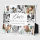 Capturez des souvenirs chéris et honorez votre père incroyable avec notre plaque photo collage photo personnalisée "Grateful for Every Moment". Customisez cette magnifique photo plaque de tenue avec 8 de vos photos préférées, joliment présenté 4 en couleur et 4 en noir et blanc intemporel. Caractéristiques "Papa" type de script de coeur et "Grateful pour chaque instant" sont affichés dans un élégant serif et de script appariement. Ajoutez le nom de l'être aimé, un message sincère ou sa citation préférée pour le rendre vraiment unique. Surprenez-le avec un cadeau personnalisé qui réchauffera son coeur et lui rappellera les précieux souvenirs que vous avez partagés. Conception par Moodthology Papery