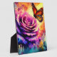 Plaque Photo Papillon monarque sur Rose violet au soleil coucha