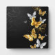 Or, bijoux et papillons blancs sur arrière - plan noir. Papillon doré.