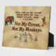 Plaque Photo Pas mes singes, pas mon cirque
