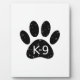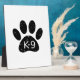 Un mignon empreinte de patte de chien de style dessin animé et texte avec l'effet grunge et angoissé appliqué à l'image. Plaques personnalisées avec thème K9. Idée cadeau.