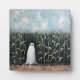 Capturez le charme d'Halloween avec notre plaque de peinture de champ de maïs fantôme, avec un design rustique et une peinture à l'huile mignonne d'esprits éthérés dansant au milieu de cornes dorées.