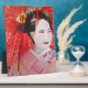 Plaque Photo Peinture originale d'une geisha avec un parapluie