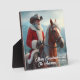 Ce design de Noël amusant montre Saint Nicolas dans un casquette de cowboy rouge à cheval sur un magnifique cheval de palomino.