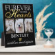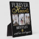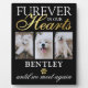 Elegant pet memorial photo plaque featuring 3 photographs of your beloved dog, the saying "furever in our hearts", your pets name, a faux gold foil paw print, and the sympathy saying "until we meet again".