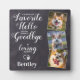 Célébrez votre meilleur ami avec une plaque mémoriale personnalisée pour animaux dans un motif rustique gris en ardoise. Cette plaque photo commémorative unique pour chien est le cadeau idéal pour vous, votre famille ou vos amis pour honorer ceux qui sont aimés. Nous espérons que votre chien mémorial photo garde-robe vous apportera la joie, la paix, et des souvenirs heureux . Citation : "Vous avez été mon bonjour préféré, et mon dieu le plus dur... Dans Loving Memory.." Voir "personnaliser ce modèle" pour modifier les photos et le nom. Il est préférable de pré-rogner les photos afin qu'elles soient centrées dans le cadre. DROIT D'AUTEUR © 2020 Judy Burrows, Black Dog Art - Tous droits réservés. Pet Memorial Perte de chien personnalisée Garde-saké Plaque photo