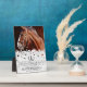 Plaque photo de cheval personnalisée avec un fond à motif de cœur en marbre moderne, une photo précieuse de votre cheval bien-aimé, des fers à cheval, la phrase "en souvenir affectueux", le nom de votre animal de compagnie et les dates.