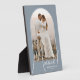 Un souvenir spécial présente votre photo de mariage dans un design à arc élégant avec le texte "Mariés" en caractères chic ainsi que vos noms et date de mariage sur un fond bleu poussiéreux. Beau cadeau pour votre famille et un merveilleux souvenir à afficher chez vous. La COULEUR du fond peut être modifiée ! PLUS DE COULEURS dans notre collection.