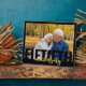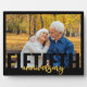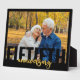 Plaque photo moderne pour votre anniversaire de mariage d'or. Le design présente une typographie géante moderne et une écriture au pinceau en noir et or. Le modèle de photo est configuré pour que vous puissiez ajouter l'une de vos photos préférées, qui est affichée au format paysage.