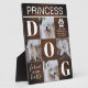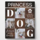 Plaque d'hommage commémoratif pour animaux avec 4 photos de votre chien bien-aimé, un arrière - plan motif en bois rustique, des lettres qui épellent le DOG, les mots "pour toujours dans nos coeurs", une patte de chien avec un rappel disant, et leur nom.