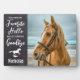 Célébrez votre meilleur ami avec une plaque commémorative de cheval sur mesure dans un motif rustique d'ardoise de tableau noir. Cette plaque photo de cheval unique est le cadeau idéal pour vous, votre famille ou vos amis pour honorer ceux qui sont aimés. Nous espérons que votre photo cheval mémorial souvenir vous apportera joie, paix, et des souvenirs heureux. Citation : "Vous étiez mon Bonjour préféré, et mes adieux les plus durs." Voir "personnaliser ce modèle" pour changer de photo et de nom. Cheval Loss Don COPYRIGHT © 2020 Judy Burrows, Black Dog Art - Tous droits réservés. Horse Memorial Equine Plaque photo