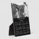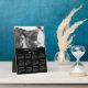 Gardez la personne que vous aimez à proximité avec une plaque de bureau de calendrier 2025 personnalisée. Remplacez l'exemple de photo et les noms par les vôtres dans la barre latérale. Le texte personnalisé est dans une police de script blanc élégante. Ci-dessous, c'est un calendrier blanc facile à lire sur un arrière - plan noir. Fait un grand cadeau personnalisé pour les vacances. Copyright de la conception du calendrier © Claire E. Skinner. Tous droits réservés. Photographie © Storytree Studios, Stanford, CA