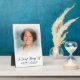 Plaque Photo Moderne En Souvenir. Conception comportant une photo unique, un texte en souvenir, et un nom sur le devant. Personnalisez avec votre message, poème, citation, etc. Mémorial parfait, hommage à un être cher qui est décédé.