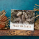 Des cônes de pin terreux et festifs sont à l'origine de ce design classique et élégant qui souhaite la paix sur Terre. Prêt à être personnalisé sur mesure.