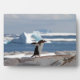 A Gentoo penguin walking in front of an arch out of ice. The Image Quoi en Antarctica. ©Angelika Stern