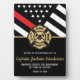 Cette conception comprend un drapeau de pompier avec des rayures noires et blanches, ainsi qu'une fine bande rouge. "Félicitations" et l'insigne d'un pompier se trouve au-dessus du nom du pompier, lieutenant ou chef qui est diplômé ou qui prend sa retraite. Fêtez dans le style !