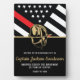Cette conception comprend un drapeau de pompier avec des rayures noires et blanches, ainsi qu'une fine bande rouge. Le casque d'un pompier est placé au-dessus de tous les détails du parti pour le pompier à la retraite, le lieutenant ou le parti de retraite du chef. Les invitations peuvent également être customisées pour un pompier qui prend sa retraite.