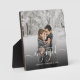 Commémorez votre fiançailles avec cette belle plaque de gardien moderne. Le texte blanc dit "Notre premier Noël engagé", avec le mot "engagé" dans un élégant script d'écriture manuscrite avec des fioritures avant et après. Remplacez l'exemple d'image par votre photo préférée, et ajoutez vos noms et l'année. Un filtre dégradé noir permet de faire apparaître le texte.
