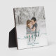 Commémorez votre fiançailles avec cette belle plaque de gardien moderne. Le texte bleu turquoise dit "Notre premier Noël engagé", avec le mot "engagé" dans un élégant script d'écriture de faux papier avec des fleuris avant et après. Remplacez l'exemple d'image par votre photo préférée, et ajoutez vos noms et l'année. Un filtre en dégradé blanc permet de faire apparaître le texte.