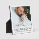 La première FÊTE DES PÈRES de papa commémorative avec cet écran de retour de chevalet photo avec un titre modifiable PREMIÈRE FÊTE DES PÈRES et une deuxième ligne de texte pour votre message personnalisé dans votre choix de styles et de couleurs de police (illustré dans une typographie classique en gris fusain sur blanc). ASSISTANCE : Pour obtenir de l'aide sur la modification ou la personnalisation de la conception, le redimensionnement ou le transfert de la conception à un autre produit, contactez le concepteur AVANT DE COMMANDER via Zazzle Conversation ou makeitaboutyoustore@gmail.com.