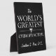 Texte gras dit "Le plus grand chiropraticien du monde" avec l'accent de l'ange chiropratique. Personnalisez avec le nom de votre chiropraticien génial! Arrière - plan à l'allure de tableau noir.