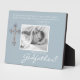 Chérissez cette bénédiction et cette proposition pour toujours avec ce design de photo Be my Godfather. Des couleurs simples et bleues conviennent à tous les genres, mais vous pouvez les coordonner avec votre propre photo personnelle en cliquant sur le lien Personnaliser davantage. Croix argent et bleu clair à gauche du modèle de photo.