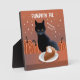 Colourful artwork depicting a delicious Pumpkin Pie, and the cat has his eyes on the nice swirl of cream!