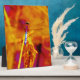 Plaque Photo Rainbow Dragonfly on amber and fuschia