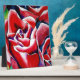 avec une conception artistique originale issue d'une peinture à l'aquarelle de Sacha Grossel représentant de multiples fleurs de roses roses, en gros plan, macro. Ce bouquet floral de roses est lumineux, coloré, avec des reflets bleus et violets et plaira aux amateurs de design botanique partout.