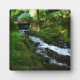 Beautiful green moss & ferns along the runoff waters of Wahkeena Falls dans les gorges de Columbia, Oregon. View of the water flowing under the bridge of the historic Columbia highway.