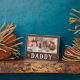 Le panneau en bois de charme pour la Fête des pères, les anniversaires ou les nouveaux papas présente deux photos côte à côte sur un arrière - plan rustique avec "papa" en dessous.