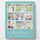 Plaque photo avec six photos disposées en grille, chacune avec une bordure blanche autour et toutes sur un fond de couleur modifiable (cliquez sur Personnaliser pour changer la couleur de fond). Vous pouvez également ajouter votre nom de famille dans une police calligraphique élégante et l'année de création. Parfait pour les cadeaux de mariage, les souvenirs de famille, etc.