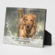 Gardez vivace le souvenir de votre animal de compagnie avec cette belle plaque commémorative qui peut être personnalisée avec une photo et des détails précieux de votre membre de famille à fourrure bien-aimé. Comprend un espace réservé pour une photo de chien dachshund, orné de feuilles de laurier blanches élégantes, et une citation sentimentale qui peut être personnalisée. Ce design présente la citation sentimentale "Si l'amour seul pouvait vous garder ici... vous auriez vécu pour toujours", et "En souvenir affectueux" avec la possibilité d'ajouter le nom et la durée de vie de l'animal. Un beau présentoir commémoratif pour garder votre animal de compagnie près de votre cœur. Cela fait également un cadeau de condoléances attentionné pour un propriétaire d'animal endeuillé.