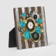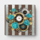 Plaque Photo Steampunk Clock and Turquoise Roses on Striped