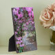 Plaque décorative avec charnière qui présente l'image d'un jardin botanique rempli de belles fleurs roses en rhododendron le long d'un chemin, ainsi qu'un message inspirant/motivant qui dit : "Suivez vos rêves". Un joli design floral !