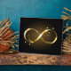 Or, bijoux symbole infini avec étoiles or sur un arrière - plan noir. Design avec étoile d'or.