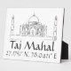Coordonnées de latitude et longitude pour le Taj Mahal, un site de l'UNESCO à Agra, Uttar Pradesh, Inde. Caractéristiques dessin vectoriel de la façade du repère.