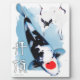 Black and white koi with red spot on the head. Known as a Tancho koi en japonais. With cranes, et japonais letters for tancho.