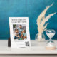 Plaque d’un père avec une image chaleureuse d’un père et d’un enfant. Un petit code QR sur le devant dit "Une petite surprise à l'intérieur 🎁", donnant de l'espace pour partager quelque chose de personnel comme une vidéo, une photo, ou une note. L'intérieur est vide pour votre propre message.