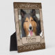 Conçu en marron foncé et clair avec une colombe sur la bannière et des volutes de calligraphie décoratives et des empreintes de pattes en forme de cœurs sur le fond. Pour les chiens, les chats ou tout autre animal de compagnie avec des pattes. Rendez hommage à un animal de compagnie adoré avec ces souvenirs de cadeaux personnalisés mémoriaux ou offrez vos condoléances avec des cadeaux de sympathie personnalisés de Healing Tears pour honorer un animal de compagnie spécial dans votre vie. Ajoutez votre image et changez le texte (nom et dates) à votre guise.