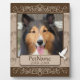 Conçu en marron clair et foncé avec une colombe sur la bannière et des volutes de calligraphie décoratives et des empreintes de pattes en forme de cœurs sur le fond. Pour les chiens, les chats ou tout autre animal de compagnie avec des pattes. Rendez hommage à un animal de compagnie adoré avec ces souvenirs de cadeaux personnalisés mémoriaux ou offrez vos condoléances avec des cadeaux de sympathie personnalisés de Healing Tears pour honorer un animal de compagnie spécial dans votre vie. Ajoutez votre image et changez le texte (nom et dates) à votre guise.
