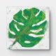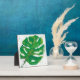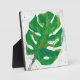A painted abstract palm leaf made with dark green brush strokes. Artist :
