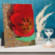 Tulipe jaune et rouge printanière, contre une roche brune au lac Arrowhead. Photo de Sandy Closs. Pâques, floral, fleurs rouges, Printemps, Saint-Valentin, valentines, mariage, mariage, Saint Valentin