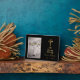 Typographie de la fausse croix dorée en mémoire aimante sur fond noir, ajoutez le nom, la date et la plaque photo