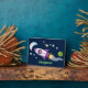 Plaque Photo Un adorable vaisseau-fusée dans l'espace dessin an
