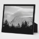 Photo en noir et blanc du Mont Rainier. Il y a des arbres au premier plan. Il y a des nuages lenticulaires qui forment et remplissent le ciel environnant au sommet du volcan endormi. Copyright ©2023 Kimberly J Tilley. zazzle.com/store/developingnature