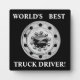 For truckers and those who wish they were. A plaque featuring a close up image of a truck wheel and the trucks full image superimposed in the center.